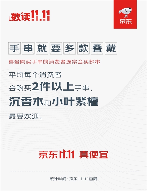 “盘串”近年来在年轻人中愈发普及。作为传统文玩的入门品类,手串的价格相对较低,很适合年轻人购买。同时,“盘手串”还兼有减压的功能,更为工作、生活压力较大的年轻人追捧。在社交媒体上,就连道观、寺庙都开始以手串作为营销破局的重点,拉进与年轻人的距离。而作为文玩“入坑”的开始,只有一串手串显然是不能满足年轻人需求的。京东11.11数据显示,平均每个消费者会购买2件以上手串,其中,沉香木手串和小叶紫檀手串最受欢迎。