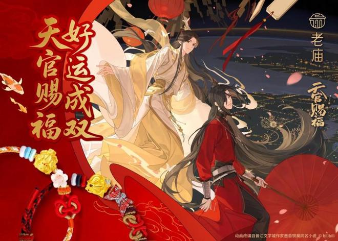 老庙携手国创动画《天官赐福》推出联名系列产品。开售当天,店铺尚未开门便已有大量粉丝排队,全天打卡人数突破1500人,迅速成为商圈焦点。
