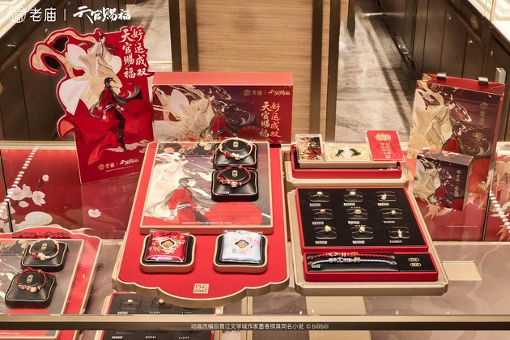 IP联名正成为品牌破圈的重要工具。老庙能够在年轻群体中迅速引发热潮,源于与国创动画《天官赐福》的文化契合——动画寓意吉祥,与老庙“好运文化”高度一致。通过黄金首饰的文化演绎,品牌触达二次元群体和新生代消费者,同时让首饰成为承载祝福与情感的独特载体。