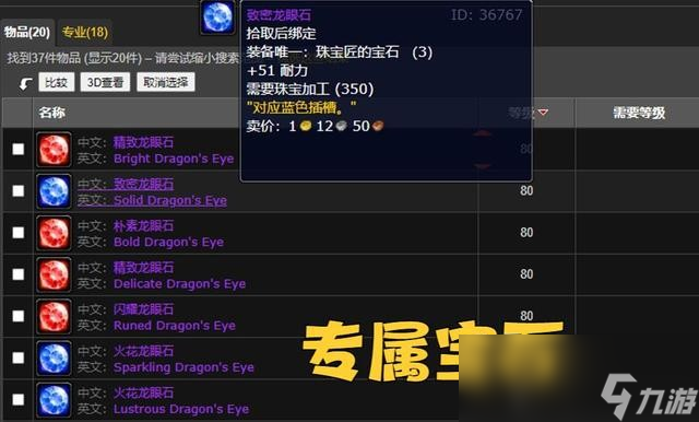 WLK版本珠宝专业的专属宝石有两个版本,一个是P1阶段的蓝色品质版本,一个是P2阶段的紫色品质版本。以耐力宝石为例,P1阶段的专属宝石加41点耐力,P2阶段的专属宝石加51点耐力。